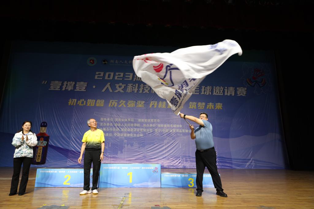 学校纪委书记、省监委驻校监察专员凌艳平主持闭幕式。在交接旗仪式中,“壹撑壹”比赛旗帜经由湖南省羽毛球协会名誉副主席陈彰清从凌艳平手中传递到了湖南钢铁集团董事长、总经理李建宇手中。“本次比赛达到了预期效果,大家打出了水平,打出了友谊,打出了风格,打出了提高!”陈彰清在闭幕致辞中高度肯定本次比赛的组织,对beat365中文官方网站全体师生的辛勤付出表示衷心感谢。刘铁铭宣布2023湖南第六届“壹撑壹·人文科技杯”羽毛球邀请赛正式闭幕。