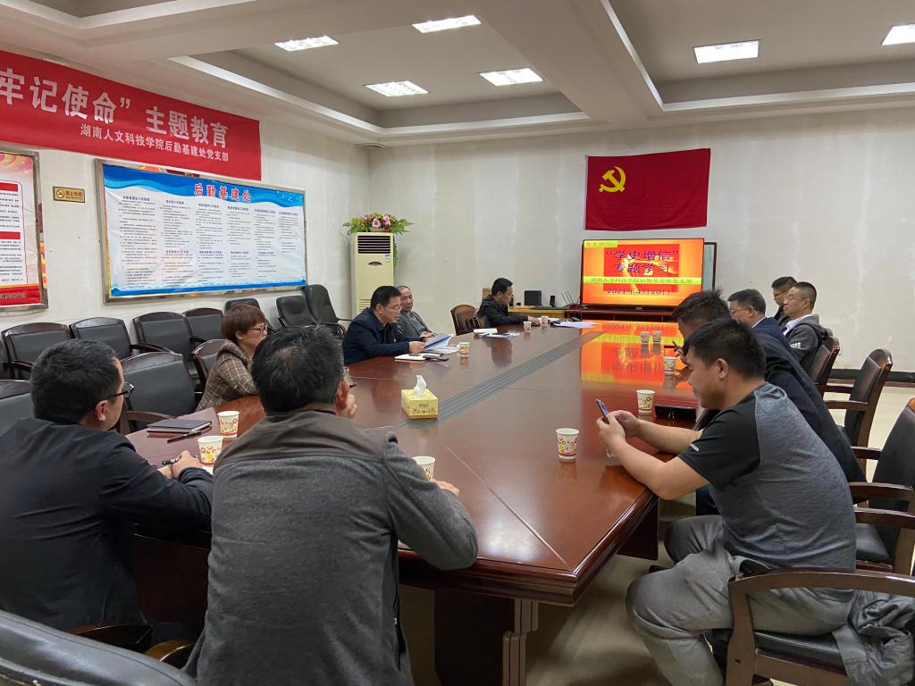 2021年4月20日下午,后勤基建处党支部全体党员在淳和楼418会议室举行党史学习教育“学史增信”专题学习活动。学习活动由李小林书记主持。