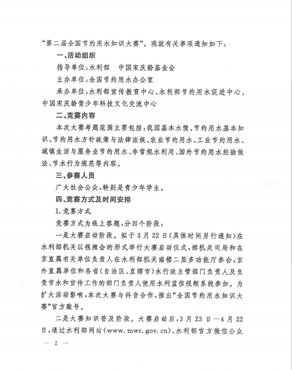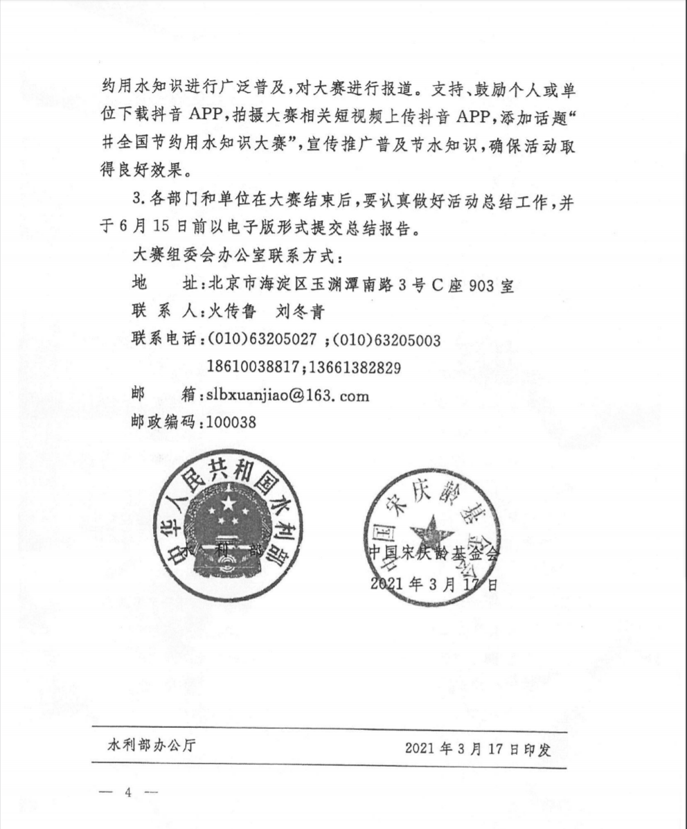 附件:水利部中国宋庆龄基金会关于举办第二届全国节约用水知识大赛的通知