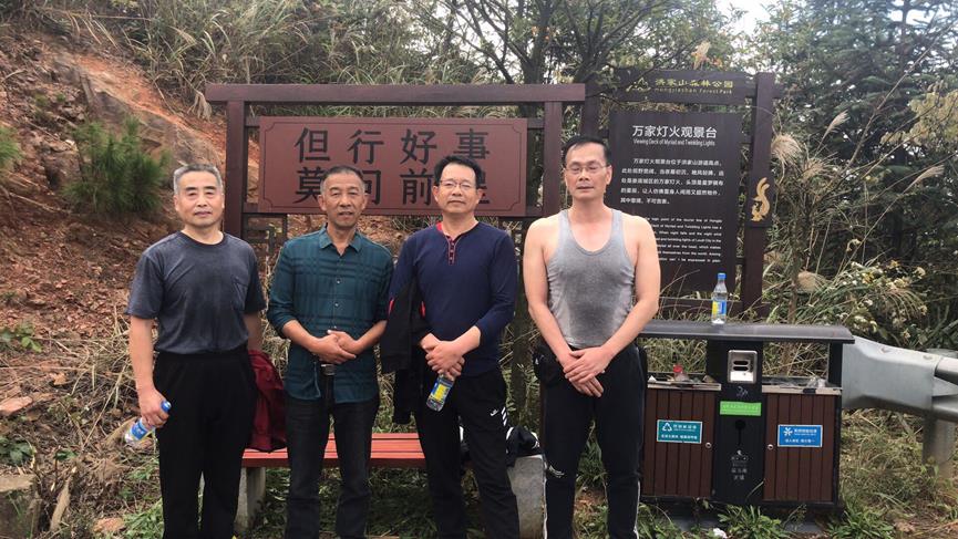 约10点左右,四位同志率先登顶,为大家做了一个示范,鼓励大家坚持登上山顶,体会一番 “会当凌绝顶,一览众山小”的心境。而后陆续有人员登上山顶,合影留念。
