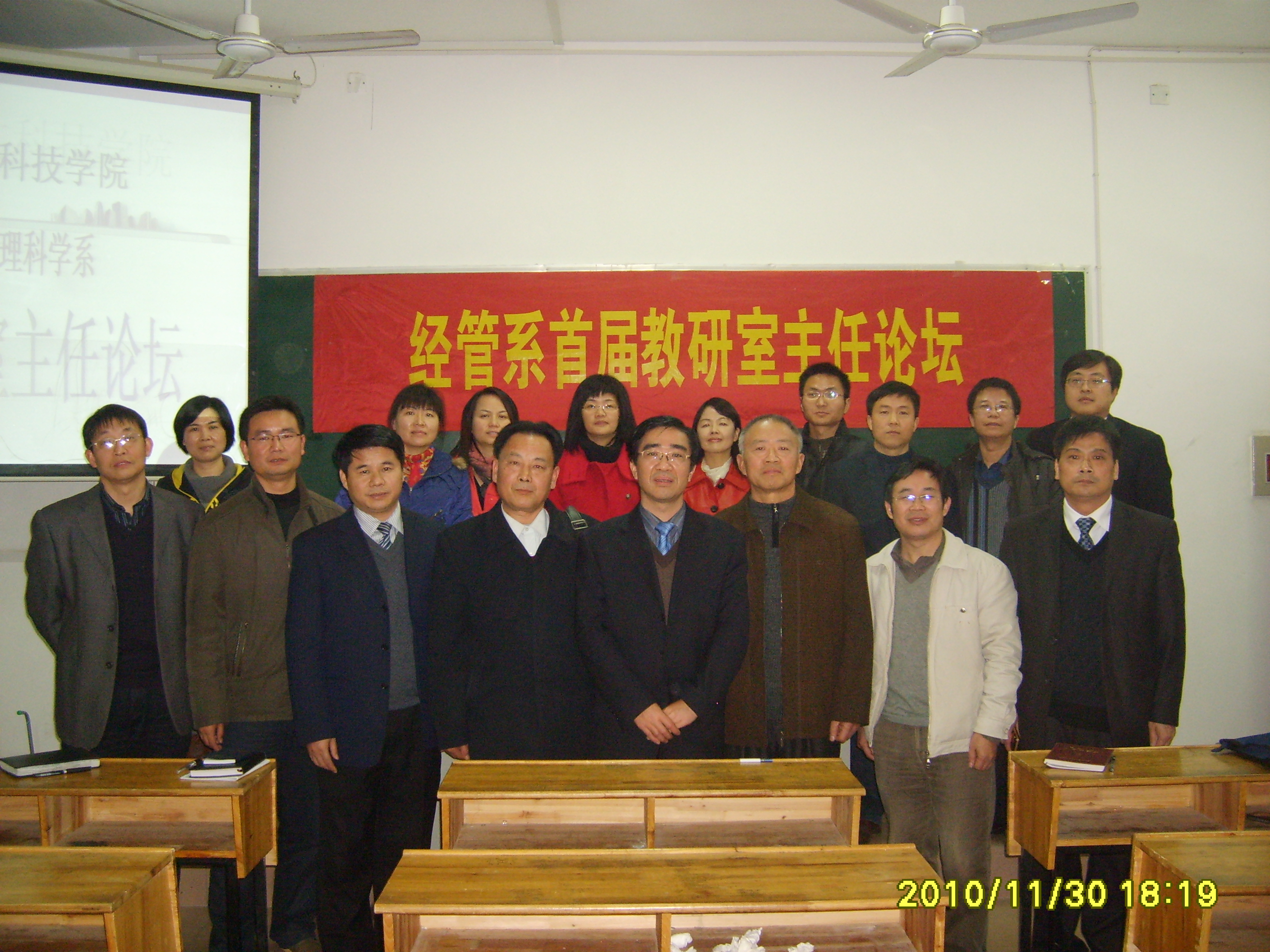 为了进一步推进经管系学科专业建设,充分挖掘、发挥教研室在教学、科研一线的作用,促进经管系教改教研活动的有效开展,搭建系部教师交流平台,经管系于11月30日下午在经管楼303教室举办了首届教研室主任论坛。论坛由王澍书记主持,经管系全体教师参加了会议,学校领导蒋建初副校长、周发明副校长、教务处高平副处长、教学督导团刘楚魁团长、彭逢澍教授等应邀出席了会议。