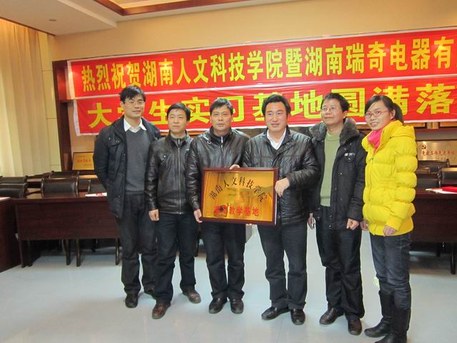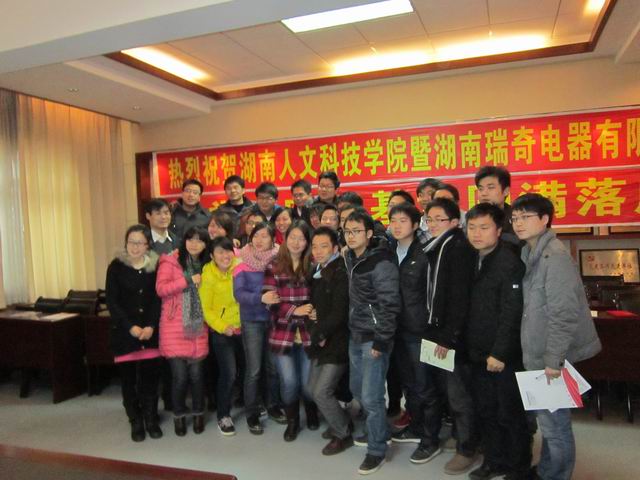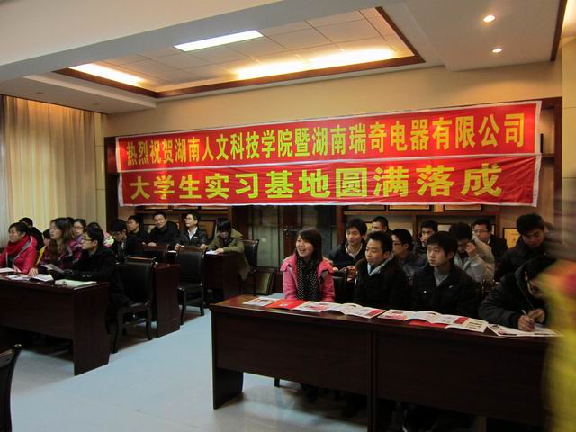 2012年1月15日,我系彭分文主任、主管教学的王志和主任和瑞奇实习队指导老师唐赟一行三人冒着冷冽的寒风来到湖南瑞奇电器有限公司,参加beat365中文官方网站和湖南瑞奇电器有限公司大学生实习基地签字授牌仪式暨2011年08级市场营销、人力资源专业瑞奇实习队毕业实习工作总结大会。