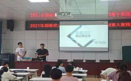 为进一步激发和培养旅游管理专业学生的学习思维能力、研究创新能力、实践操作能力和团队协作精神,营造创新创业人才培养的浓厚氛围,全面提高人才培养质量,2021年7月4日上午8点30,商学院2021年湖南省大学生酒店管理商业策划创意大赛预选赛在高韵楼101教室隆重举行, 2018级与2019级旅游管理专业学生参加了本次比赛,专任教师谢益民、石娟、王晶晶以及刘芬担任评委。