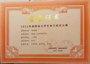 经过激烈角逐,最终由仪梓涵、唐海峰、朱可塑、陈乐乐所在的“F leader”团队获得2021年湖南省大学生电子商务大赛主题赛二等奖、全国大学生电子商务“创新、创意及创业”湖南赛区三等奖,宁卿涵、詹学亮、刘佳一所在的“电商小白”团队获得2021年湖南省大学生电子商务大赛跨境赛二等奖。“一番星”团队与坠入梦“湘”队分别获得由全国大学生电子商务“创新、创意及创业”挑战赛竞赛组织委员会颁发的校级赛特等奖以及一等奖。(齐月、罗伟祎)
