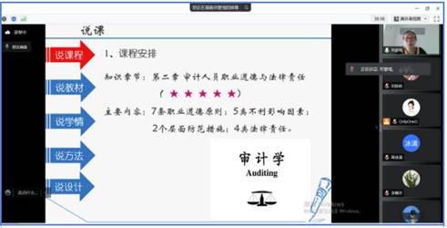 为深入贯彻落实中共中央办公厅、国务院办公厅《关于深化新时代学校思想政治理论课改革创新的若干意见》和《高等学校课程思政建设指导纲要》文件精神,落实立德树人根本任务,高质量推进以“课程思政”为目标的课堂教学改革,使各类课程与思想政治理论课同向而行,全面提升我院教师课程思政教学能力,商学院于4月10日下午举行“商学院2022年课程思政教学竞赛”。比赛在腾讯会议上进行,特邀质量监控与发展规划处处长蒋冰清,校督导团副团长杨正德教授、校督导胡云生教授、朱阳生教授以及商学院院长刘辛田教授担任评委,副院长刘加林教授主持。