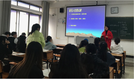本次公开课是《酒店前厅与客房管理》课程思政教学改革成果的汇报课,主题为“接待管理”。整个课堂教学分为四个环节,一是通过问题“酒店前厅接待工作开始前需要做哪些准备工作”引出课程主题,明确提前准备的重要性;二是结合酒店的实际操作规程讲解接待管理的程序,明确课程的学习内容,强调礼仪规范、工作热情及以店为荣的家国情怀;三是在课程讲授基础上,以组为单位设计情境,组织语言进行旅客接待工作训练,培养学生语言组织及团队协作能力;四是总结本节内容,激发学生对于酒店服务工作的热爱。课堂借助学习通教学平台,通过主题讨论、个人抢答及分组任务三种形式充分调动了学习积极性,锻炼了学习能力,提升了学习效果。