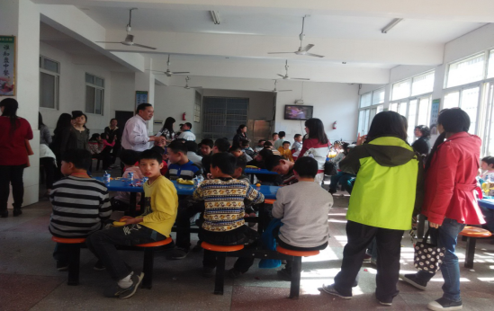 图2:支部学生给特殊学生分发食物