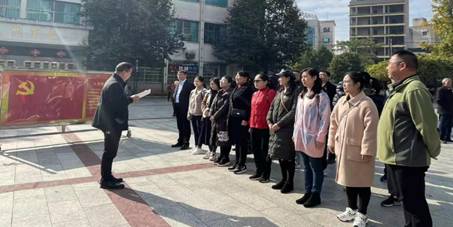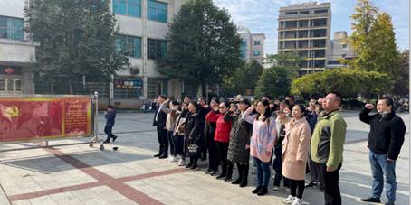 商学院全体党员在蔡和森同志光辉一家塑像前重温入党誓词