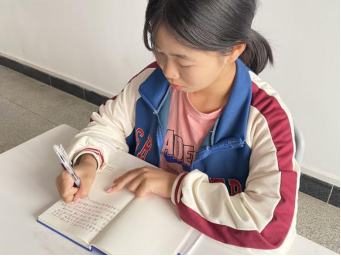 二等奖获得者谢昕玲、谢媛媛正在写家书