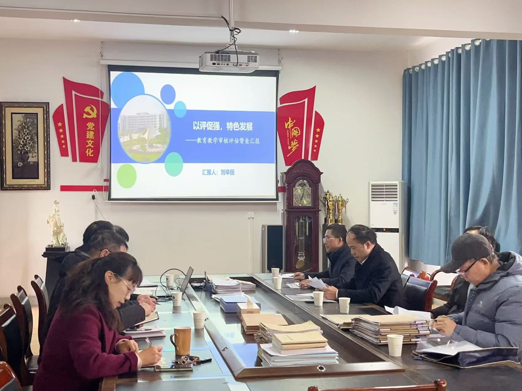院长刘辛田从组织领导、工作思路、办学特色、问题思考等四个方面,详细汇报了商学院本科教育教学审核评估评建工作,重点介绍了商学院追求的办学特色即“1+N+N”应用型的人才培养模式,提出了学院在审核评估评建工作中遇到的主要困难和问题。