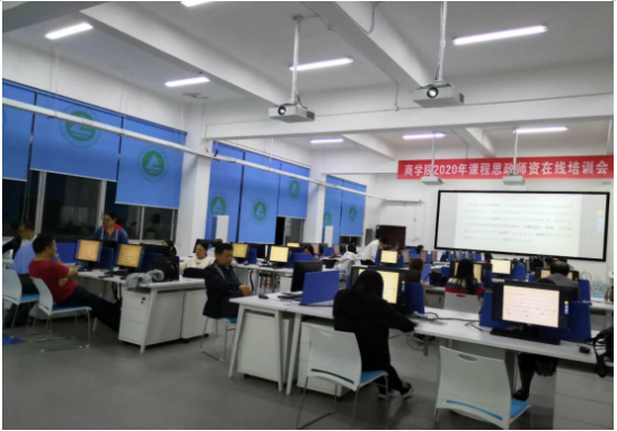 为了全面推进高校课程思政建设,加强专业教师的思政意识,提高教师课程思政教学设计能力,实现专业课与思政课程的融合,落实立德树人的根本任务,全面提高人才培养质量,我院分别于9月23、24、25、26日连续4日组织教师在匠成楼404开展 “ 课程思政”教学设计在线集中培训,教务处处长羊四清、各二级学院分管教学工作的副院长以及今年申报了省级课程思政教改项目的负责人以及我院21位专任教师参加了本次培训。
