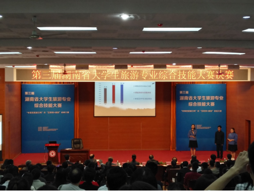 “大学生旅游专业综合技能大赛”与湖南省旅游产业发展的新生态高度契合,与大学生创新创业高度契合,是培养高素质旅游专业人才,实现湖南省旅游业持续、健康和稳步发展,带动全省旅游质量整体提升的有效方式,因此各大高校相当重视。本次大赛的参赛队伍来自全省25所包括湖南师范大学、中南林业科技大学等有独立旅游学院在内的一本、二本院校,参赛队伍达61支。此次获奖,离不开旅游管理专业全体老师、指导老师和三位同学的辛勤付出,也离不开商学院领导老师和学校的大力支持。(商学院供稿)