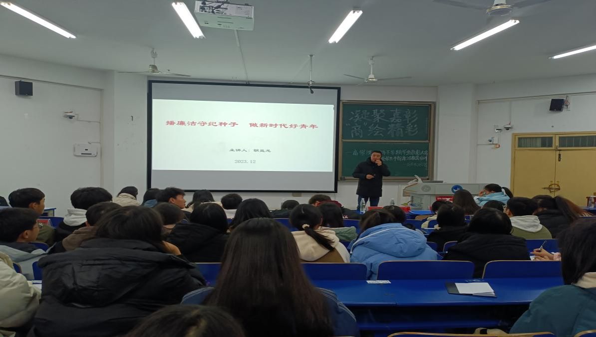 12月18日晚,商学院在致远楼119教室举办以“播廉洁守纪种子 做新时代好青年”为主题的学生干部廉洁教育培训。本次培训由学院党总支副书记胡益龙主持并主讲,团学会全体学生干部参加培训。