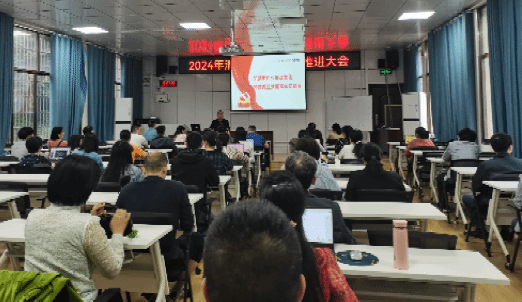 64午,商学院在高韵楼101召开2024年清廉商学院建设推进大会,学院全体教职员工参会会上,党总支书记刘辉作了一场“弘扬新时代廉洁文化 持续推进清廉商学院建设”主题辅导报告