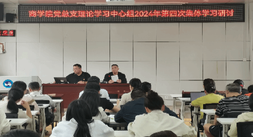 4月23日下午,商学院党总支理论学习中心组(扩大)在高韵楼101开展集中学习研讨,理论学习中心组成员、全体师生党员和入党积极分子代表参加,党总支书记刘辉主持。
