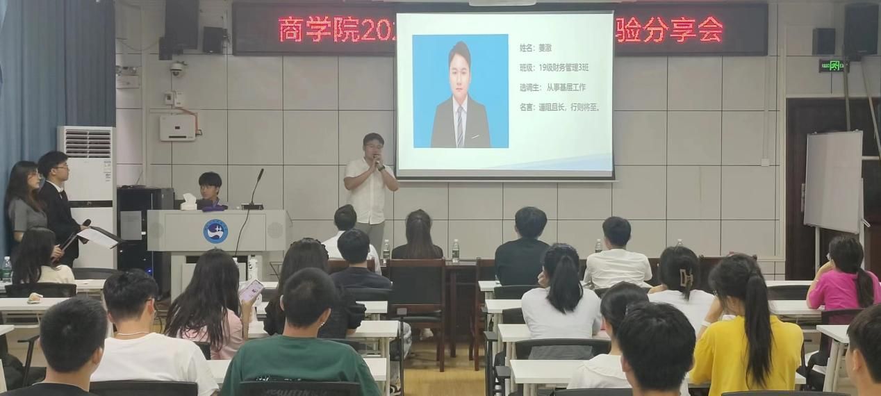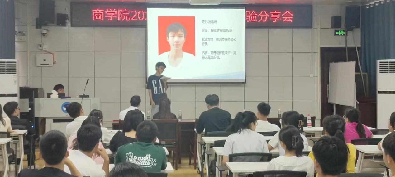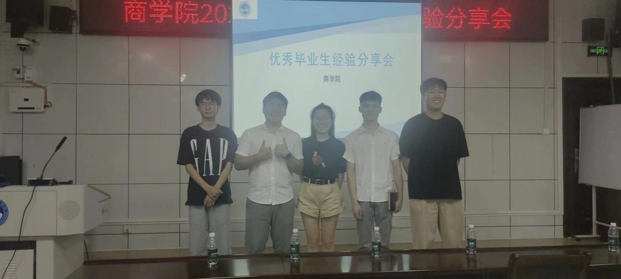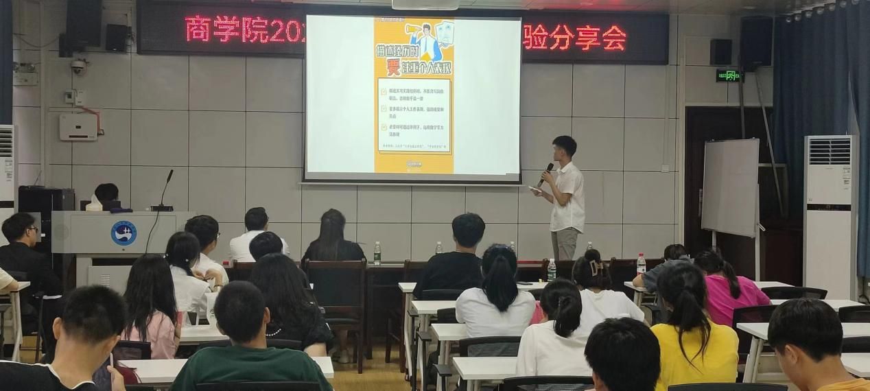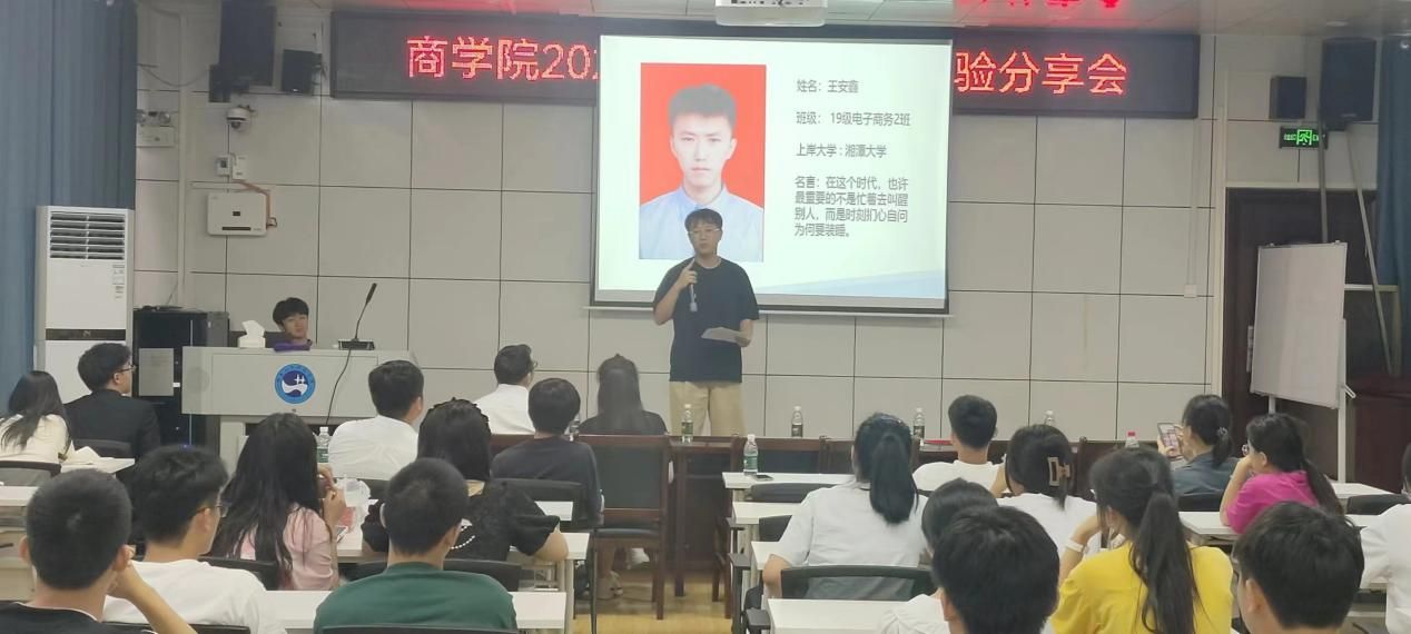 2023届毕业生即将离校之际,2023年6月2日下午,商学院在高韵楼101召开2023届毕业生经验交流会,姜澈、王安鑫、汤嘉萌、白世成、欧阳明顺等五位优秀毕业生受邀参会,22,21,20级学生代表参加,彭勇老师和钟晨老师出席。