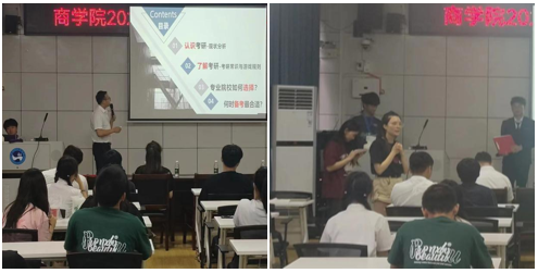 王安鑫学长主要分享了自己如何从差生走到考研上岸的奋斗历程,介绍是自己学习英语的方法,幽默的语言给予了在座的同学们更大的信心。王学长坚信,只要有毅力,都一定会得到自己想要的结果。