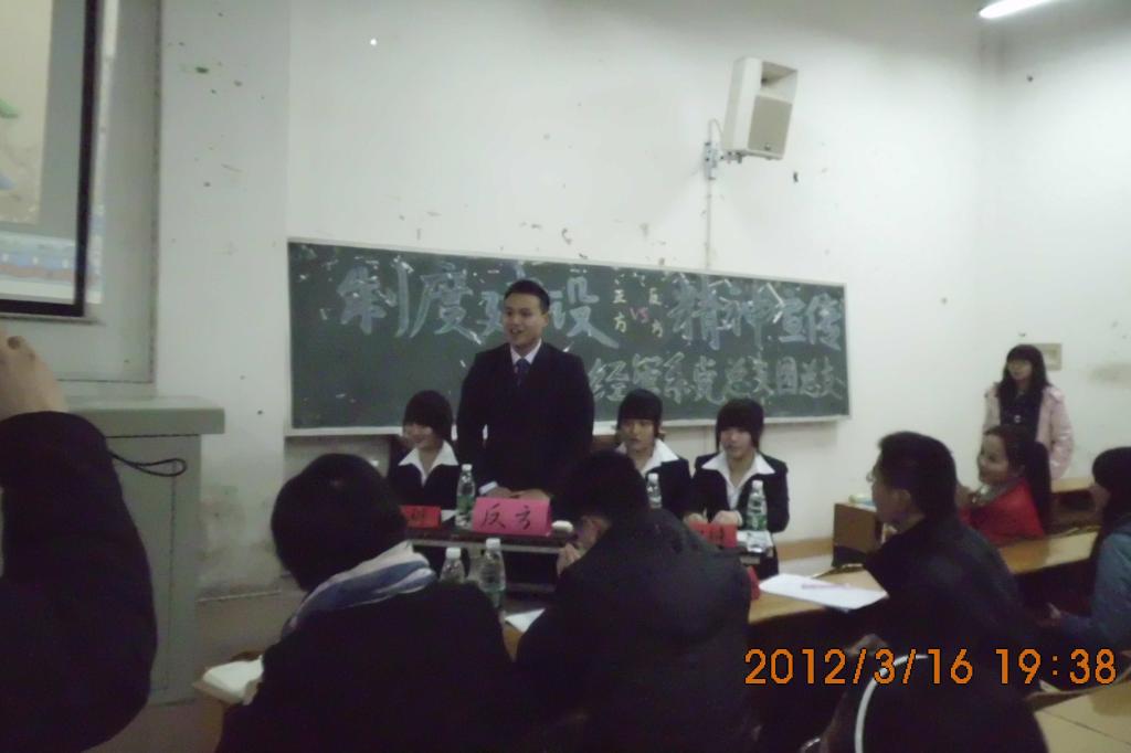 今年是雷锋同志去世50周年也是毛主席题词向雷锋同志学习49年,我系党总支和团总支联合组织了一届主题为“关于弘扬雷锋精神重在制度建设还是精神宣传”的辩论赛。3月16日晚七点半,辩论赛在经管楼601阶梯教室举行。参加此次辩论赛的领导老师有党总支副书记刘红燃书记,党总支组织委员李宁老师,王业良老师,各党支部书记以及团总支书记,和我系毕业的优秀学生陈威学长。