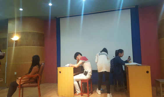 2016年4月19日下午在同德楼101室我院举办了英语戏剧大赛初赛,商学院学习部负责此次活动筹划及整个活动开展与实施。本次比赛由梁丹老师以及四位学长学姐担任评委。11支初赛队伍经过精彩表演和激烈的竞争后,各位评委根据各节目语言表达、舞台表现力等综合考虑后,最终决定推选Parental Heart(可怜天下父母心)与First semester of Freshman(大一上学期)两支队伍参加复赛。