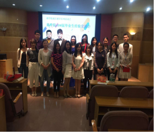 2016年5月22日晚7点30分,商学院“分享成功经验,畅想美好未来”为主题的毕业生经验交流会在养根楼报告厅隆重。