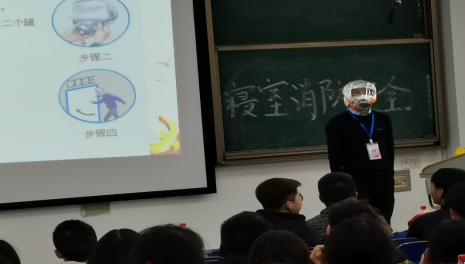 首先彭教官并结合近年来发生的火灾案例,以视频、图片及文字的形式生动地阐述了普及消防安全知识提升消防意识的重要性,同时从“防火”、“灭火”、“逃生”、“自救”四个方面详细介绍了火灾的形成过程、自救逃生的方法以及灭火器的种类和操作方法等一系列消防安全知识。