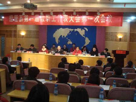 在学校党委行政的直接领导下,经报请校工会同意,经济与管理科学系第一届教职工代表大会第一次会议正式会议于2010年1月18日上午在学校多媒体报告厅隆重召开。出席并指导本次教代会的学校领导有学校党委书记姜正国教授、学校党委副书记校长柏连阳教授和学校党委委员校工会主席邓和秋研究员,以及校工会刘文红副主席和刘烨副主席,各教学教辅单位的党总支书记和分工会主席。会议由刘辛田副书记主持。