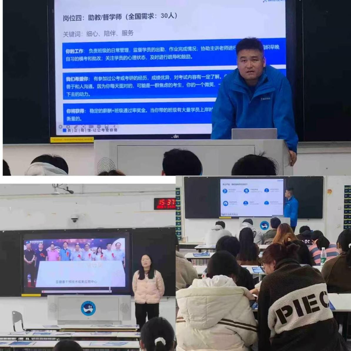 宣讲会上,两家企业代表依次围绕公司发展历程、业务布局、企业文化及人才需求等方面做了详细介绍。星途径教育企业代表李泓锴重点解读了行政班主任、课程运营等岗位的任职要求与发展前景,系统阐述了薪酬体系与晋升机制。湖南新城智慧医药集团企业代表单海燕聚焦医药健康领域,围绕营销管培生、职能管培生等岗位,深入分析了行业发展趋势与岗位能力标准,并分享了企业在智慧医疗领域的技术成果,展现了行业的广阔发展空间。