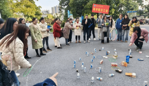 趣味套圈环节率先拉开帷幕,活动以休闲娱乐、全民参与为原则,现场整齐摆放着各类实用日用品作为礼品,每位女教师均获得一次套圈机会。大家站在指定线外,凝神聚力、瞄准投掷,有的一击即中收获满满惊喜,有的稍显遗憾却依旧笑意盈盈,现场喝彩声、欢笑声此起彼伏,热闹非凡。工作人员认真维持秩序,确保活动公平有序,小小的套圈不仅套出了节日的欢乐,更让大家在互动中感受着轻松愉悦的氛围。