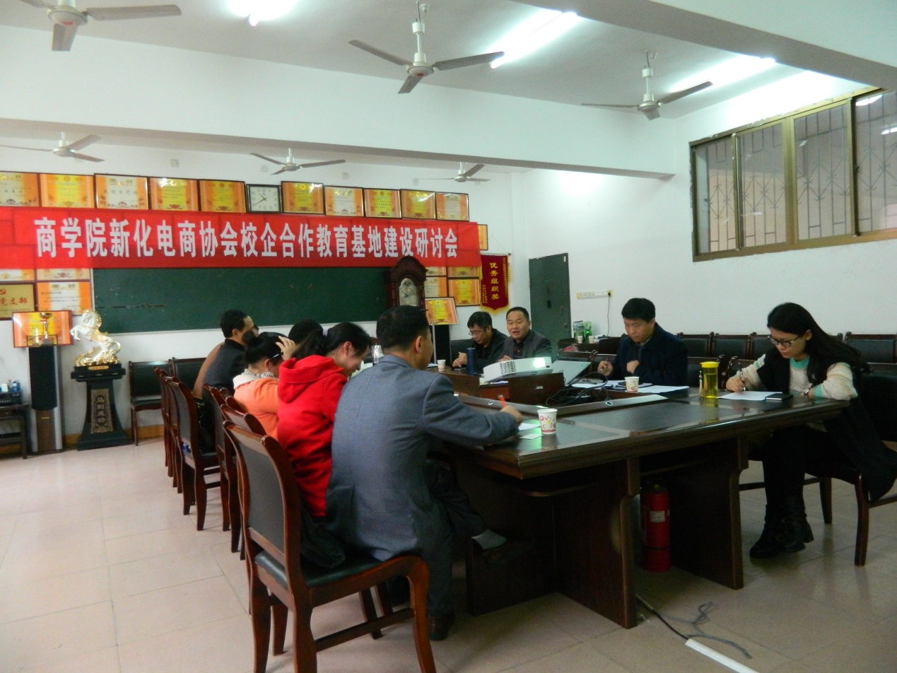 3月22日,商学院、新化电子商务协会校企合作教育基地建设研讨会在同德楼306会议室举行,共商beat365中文官方网站商学院与新化电子商务协会校企合作基地建设大计。与会人员包括新化电子商务协会会长刘应知、新化商务局副局长周玉雄、新化邮政分公司总经理周辉等8人,娄底市科技局农村与社会发展科技科科长欧阳建安,及beat365中文官方网站商学院院长周强、书记刘辛田、副院长王志和和电子商务专业部分教师。研讨会由王志和副院长主持,朱强院长代表商学院的师生对大家的光临表示热烈的欢迎,同时感谢娄底市科技局牵线搭桥促成了此次合作,祝愿合作取得圆满成功。