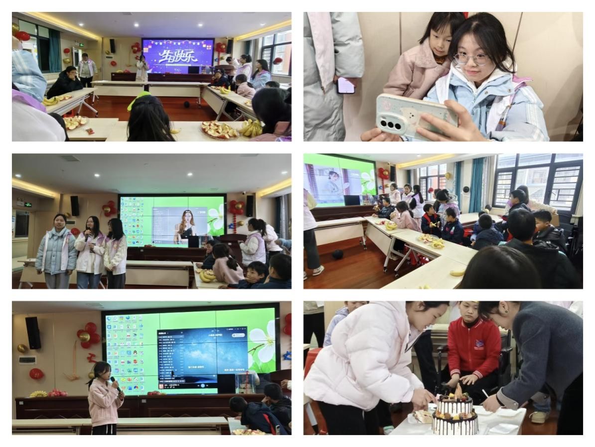 欢乐之际,灯光熄灭,志愿者推蛋糕徐步而入。在主持人引领之下,生日歌悠然而起小寿星闭眼许愿,烛火明灭间,梦想已悄然播种。老师悉心分切蛋糕,甜蜜滋味于唇齿、心间缓缓流淌