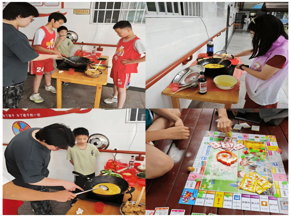 活动伊始,志愿者带领小朋友们走进厨房,开启了一场别开生面的“厨艺课堂”。从洗菜、切肉到烧水、烹饪,志愿者手把手地耐心示范每一步操作,让孩子们在劳动中收获快乐与成长。厨艺活动结束后,大家一同玩起了“大富翁”游戏。整个活动中,志愿者与孩子们聊天,倾听他们的心声,鼓励他们勇敢表达自我。欢声笑语中,孩子们不仅锻炼了思维能力,也与志愿者建立了深厚的情谊。