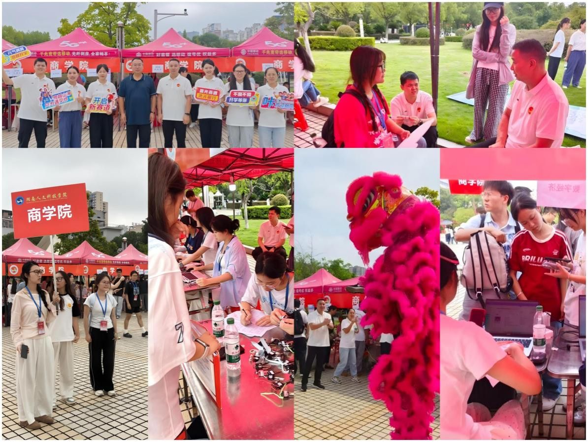 学院党总支书记刘辉、副书记胡益龙带领下,全体辅导员、新生班主任、新生班主任助理、团学会学生干部以及学生党员志愿者来到海园广场迎新点,一起迎接来自全国不同省市的347名商学院新生。志愿者们主动接过新生行李,引导新生完成报到流程,细致介绍校园环境和设施,精准分发寝室钥匙,用行动传递关爱