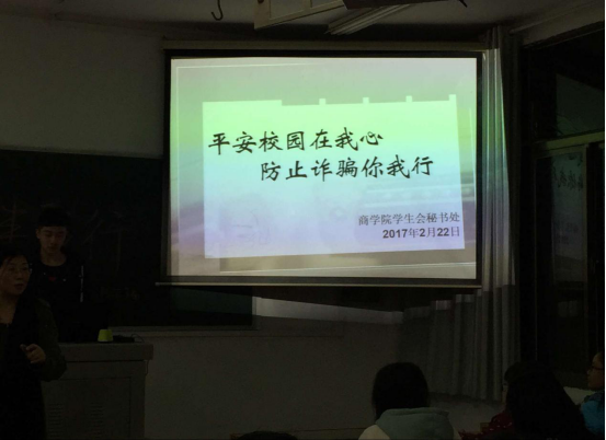 2月26日晚19:30,商学院在大一各个班级举办了《平安校园在我心》防止诈骗主题班会。班会主要就校园内诈骗作案的主要手段、校园贷的含义及危害、校园常见诈骗案例高校诈骗的预防方法、防诈骗短视频等多个方面向学生阐述了如何防止诈骗,保护自身财产安全。