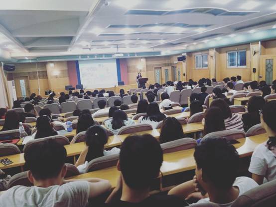 2019年6月13日下午15:00,beat365中文官方网站养根楼多媒体报告厅座无虚席,2017级、2018级电子商务专业近200名学生在报告厅认真聆听2013级优秀校友冯梅学姐的讲座。