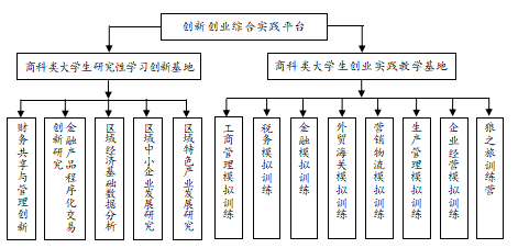 中心简介(限2000字以内):(包括建设历史、中心构成、支撑条件、管理体制、创新创业教育改革、课程教学资源、网络平台等情况)。 1.建设历史 商科类专业创新创业教育中心是以工商管理类、电子商务类、旅游管理类、物流管理与工程类、金融学类等专业创新创业教育为主线,依托工商管理类专业大学生创新训练中心,着力搭建商科类专业学生自主学习的创新创业教育实践平台。中心借助湖南省市场营销类专业校企合作人才培养示范基地(2012)、湖南省教育信息化试点项目平台(2014)、湖南省管理类专业校企合作创新创业教育基地(2016)、湖南省市场营销类专业校企合作创新创业教育基地(2016)、湖南省十三五综合改革试点专业——电子商务专业(2016)等6个省级平台、应用经济学校级重点学科、3个研究所(企业管理研究所、区域经济发展研究所和电子商务研究所)和校企共建集团财务共享实验室、集团财务管控实验室、电子商务创业实验室、跨专业综合实训室、狼之旅训练营等创新创业实践平台,以及金蝶软件(中国)公司等提供的高层次专业技术人员作为指导教师和创新创业教育相关的课程与实践教学资源等,创新了校企合作环境下的大学生创新创业教育,为beat365商科类专业的创新创业教育提供良好的平台。 2.中心构成 目前商学院实验实训中心设置有电子商务、物流仿真、集团财务共享与财务管控、人力资源管理、模拟导游、跨专业综合实训、企业经营模拟、营销沙盘与经济学沙盘等19间实验室,中心构建了由“商科类专业大学生创业实践教学基地”和“商科类专业大学生研究性学习创新基地”组成的创新创业综合实验平台,如图1所示,开展创新创业教育实践。