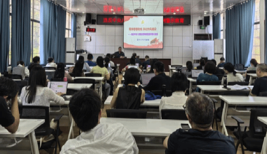 513日下午,党总支书记刘辉在高韵楼101以“筑牢思想防线 深化作风建设”为主题面向全院教职员工开展违反中央八项规定精神典型案例警示教育。