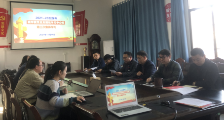会上,院长刘辛田领学了《中国共产党第十九届中央委员会第六次全体会议公报》副书记胡益龙领学了《中国共产党建设一百年》部分章节。副院长刘加林领学了《湖南省深化新时代教育评价改革实施一百年》。谷小科领学了《新时代学校思想政治理论课改革创新实施方案》。韦灵伟、郑清华、刘诗海、黄鹍鹏、刘爱华则分别领读《中国共产党简史》第二章第六章内容