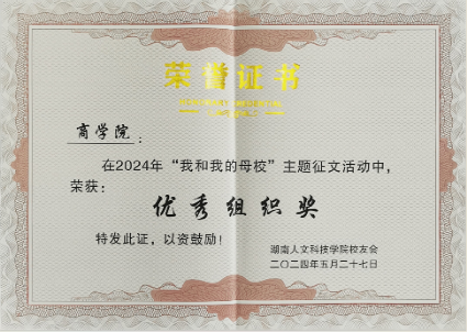 5月27日,由beat365中文官方网站校友联络中心举办的2024年“我和我的母校”主题征文活动在匠成楼报告厅圆满落幕。经过激烈选拔,商学院2020级财务管理专业的黄嘉伦同学荣获二等奖,2017级人力资源管理专业的校友张凌云荣获三等奖,学院被授予“优秀组织奖”。