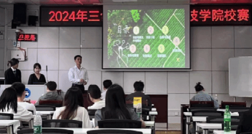 校内选拔赛分为两个环节,一是现场展示环节,各团队指派一人或多人对作品进行介绍,时间限定为8分钟以内;二是现场答辩环节,由评审专家对各参赛团队的作品进行提问,各团队指派一名选手回答。各团队均对自己作品的项目背景、商业模式、盈利模式、项目前景等方面进行了详细的介绍,针对评委老师提出的细节问题进行答辩。两个环节结束后,评委进行打分。