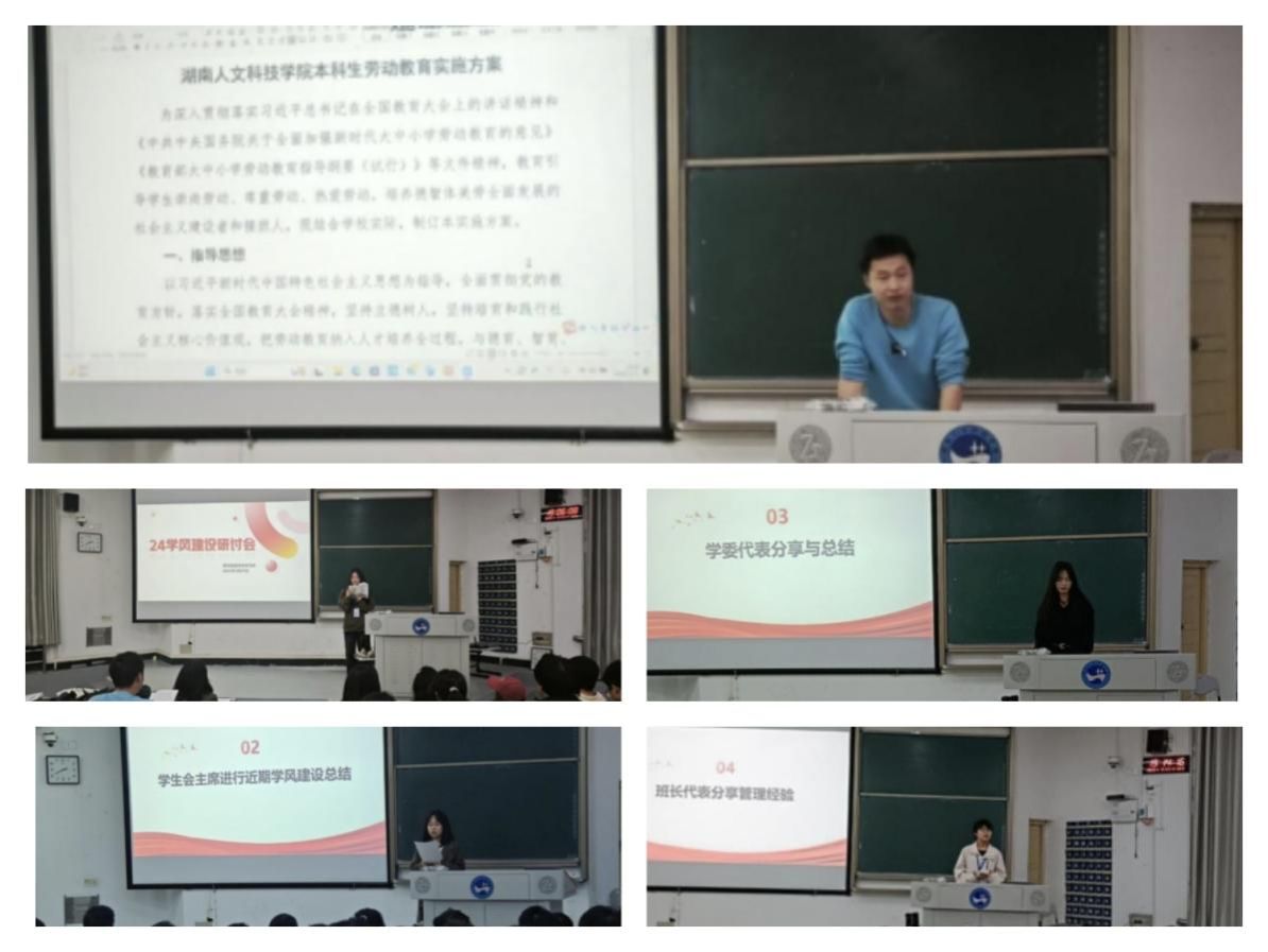 首先学习部对近期学院学风督察情况进行了总结通过具体案例,直观展现了当前学院学风的整体态势。随后班长和学习委员代表依次上台,结合班级实际情况,围绕激发学生学习兴趣、培养学生良好学习习惯等主题,提出设立奖惩措施、举办多样化读书主题活动建议最后谢迎峰对《beat365中文官方网站本科生劳动教育实施方案》进行了详细解读强调学生干部要以身作则,发挥模范引领作用,带动全体同学共同投身学风建设。