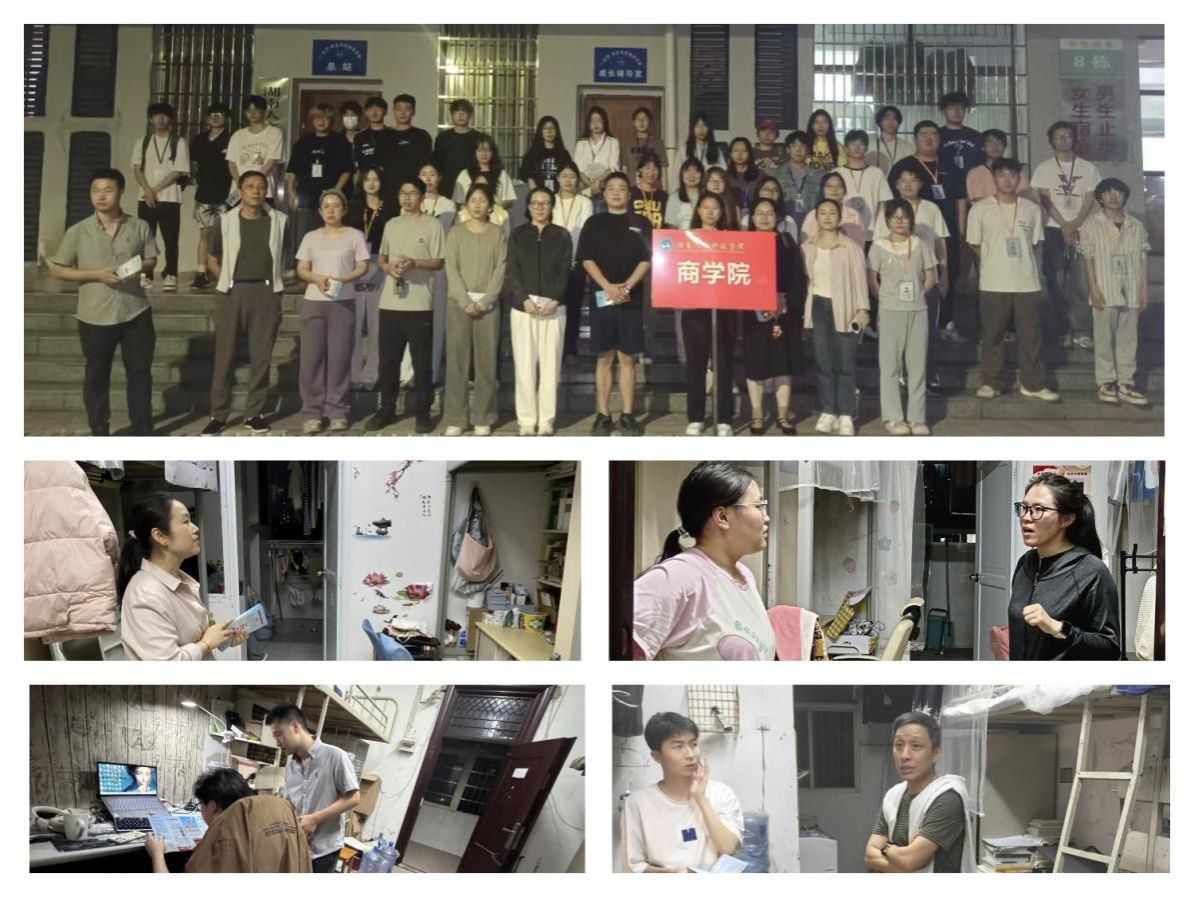 为积极迎接学校即将开始的本科教育教学审核评估,全面提升学生宿舍管理与服务水平,展现商院学子良好精神风貌,商学院于4月20日晚开展了全覆盖式宿舍安全大排查行动。学院党总支副书记胡益龙带领全体辅导员、班主任以及团学会部分学生干部深入学生宿舍,进行细致全面的安全检查。