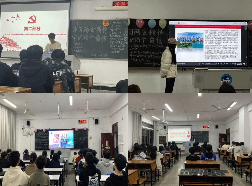 为深入学习贯彻习近平总书记在全国“两会”期间的重要讲话精神,引导同学们深刻领会、准确把握两会精神实质,切实增强政治责任感和使命感,3月20日晚,商学院2023级全体同学于致远楼开展了“学习两会精神 牢记四个自信”主题团课。