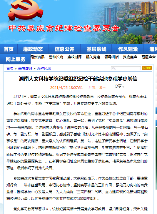 娄底廉政网----beat365中文官方网站纪委组织纪检干部实地参观学史增信