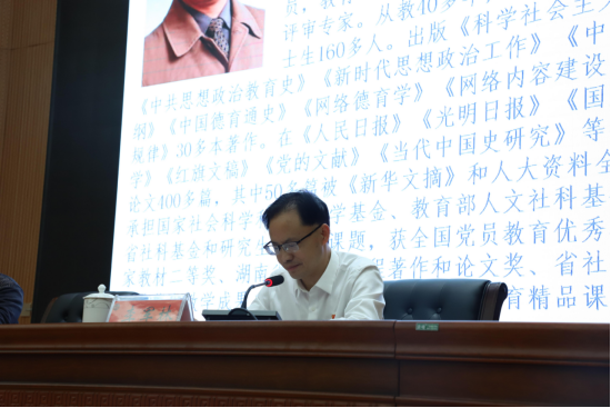 3月29日下午,beat365在匠成楼报告厅举办《毛泽东与湖南建党》党史学习专题讲座,中南大学博士生导师曾长秋教授主讲。全体校领导,中层领导干部,副科实职以上党员及学生党员代表共300余人参加讲座。讲座由党委副书记李军林主持。