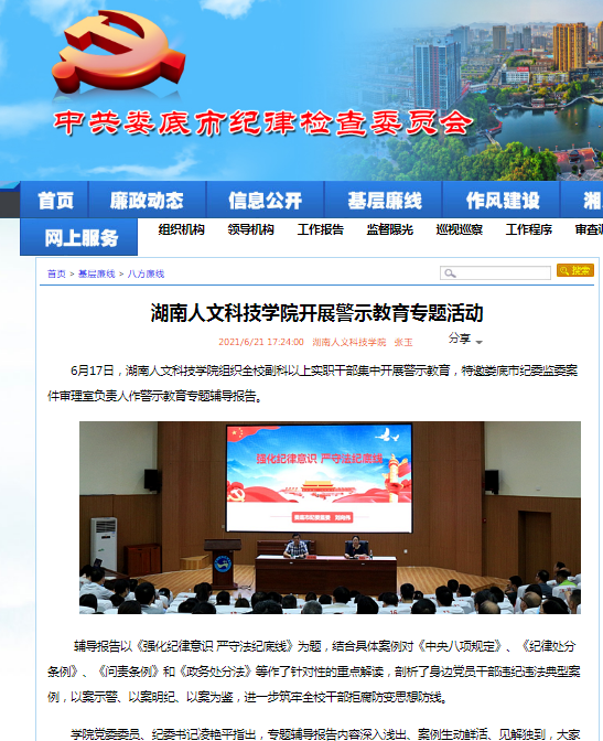 娄底市廉政网----beat365中文官方网站开展警示教育专题活动