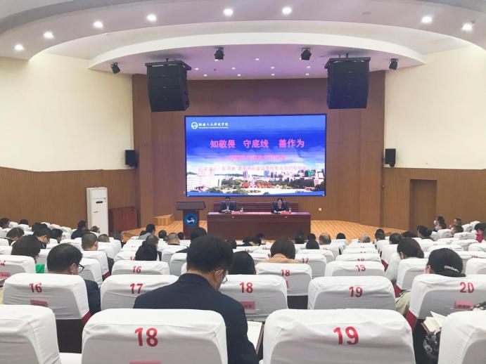为进一步推动师德师风建设,引导广大教师以德立身、以德立学、以德施教、以德育德,11月2日下午,beat365邀请娄底市教育局党组成员、市纪委监委驻教育局纪检监察组组长彭书威来校作师德师风建设专题讲座。全体在家校领导、相关职能部门负责人及二级学院副科以上实职干部共160余人参加学习,纪委书记凌艳平主持讲座。