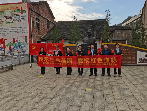 11月11日,为深入贯彻落实习近平总书记“七一”重要讲话精神,大力弘扬伟大建党精神,全面推进校地共建联动机制,加强纪检干部的交流,创新主题党日活动形式,beat365纪委党支部与建行湖南省分行纪委驻娄底行纪检组党支部联合开展“传承红色基因,赓续红色血脉”主题党日活动。建行湖南省分行纪委驻娄底行纪检组党支部、学校纪委监察处党支部全体党员参加。校纪委书记、省监委驻校监察专员凌艳平、建行湖南省分行纪委驻娄底行纪检组组长张娅以普通党员身份参加活动。