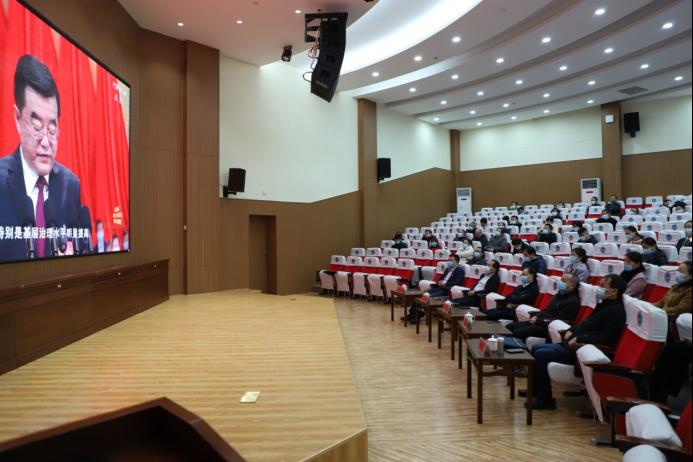 11月25日上午,机关党委组织机关全体党员在匠成楼报告厅集中收看中国共产党湖南省第十二次代表大会开幕盛况现场直播。在家校领导出席。