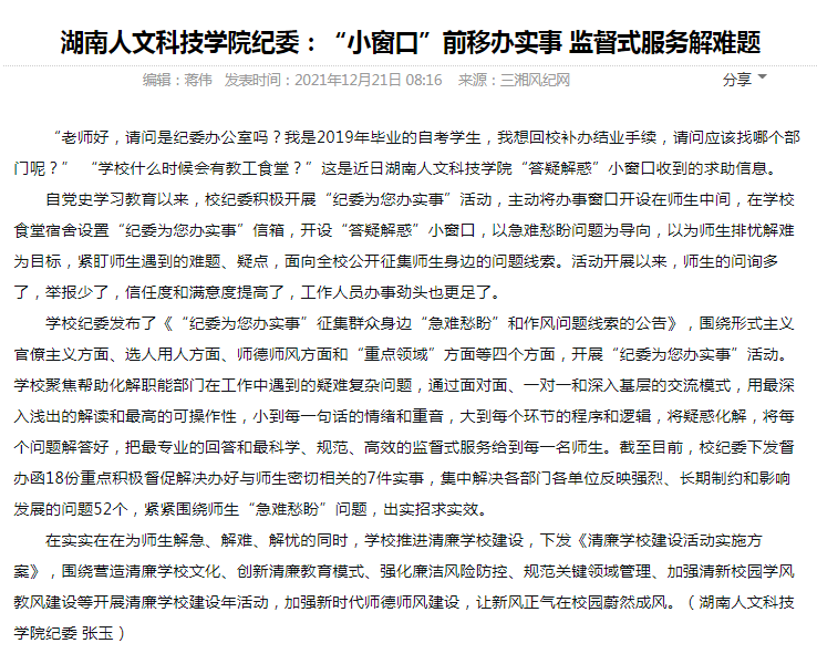 三湘风纪----beat365中文官方网站纪委:“小窗口”前移办实事 监督式服务解难题