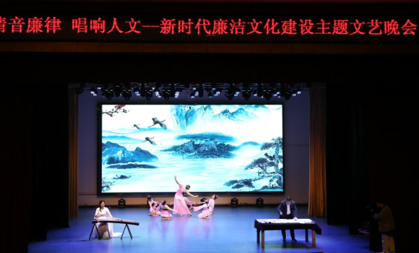 晚会在大气磅礴的民族管弦乐合奏《我的祖国》中拉开序幕。群舞《爱莲说》和《出水莲》既带来了廉与美的感染和熏陶,又留下对廉的无限思索。男女生二重唱《不忘初心》和群舞《半条棉被》传递着“军民情深”的温暖,传承着红色革命文化基因。纪检监察干部以身作则,带头唱响《廉洁自律之歌》,以唱的形式,促进纪律规矩入脑入心,真正做到清正廉洁。晚会在歌伴舞《春风十万里》中落下帷幕,表达了学校正以团结奋进的崭新面貌,砥砺前行,以优异成绩迎接党的二十大胜利召开。整场晚会以民族管弦乐合奏、书法、钢琴协奏、独唱、合唱、舞蹈等表演形式,为全校党员干部送上了一场精美的廉洁精神“大餐”。